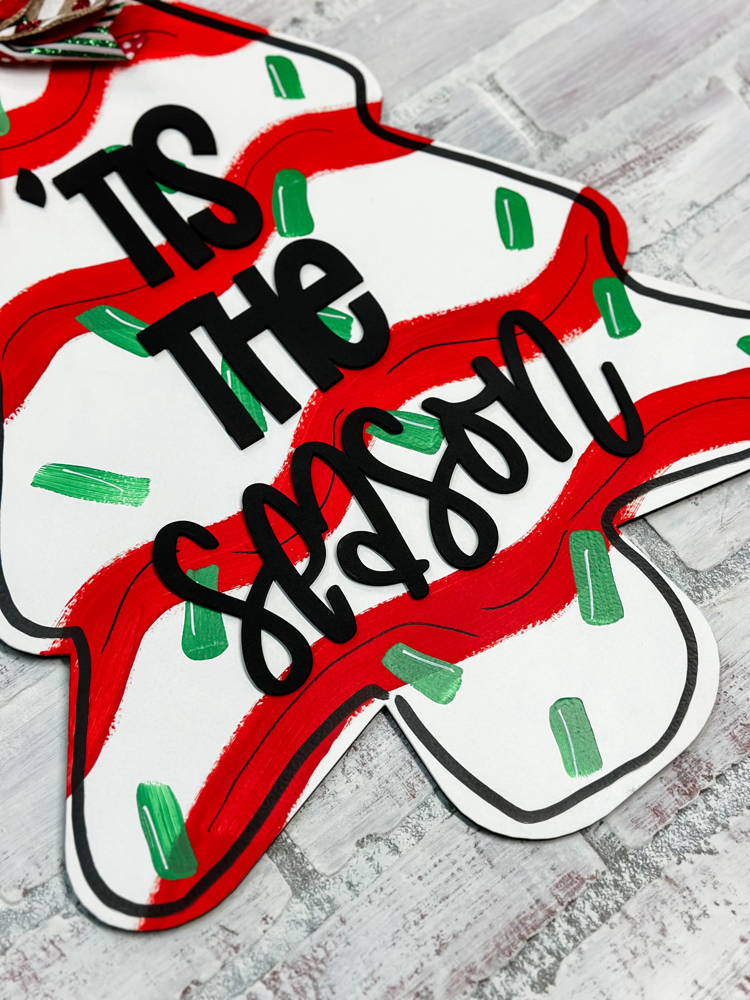 Deck the halls and your front door with this festive door hanger for all you Christmas tree cake enthusiasts out there! Spread some holiday cheer and show off your love for all things sweet with this unique and whimsical addition to your holiday decor. 'Tis the season to indulge in treats and celebrate with style!